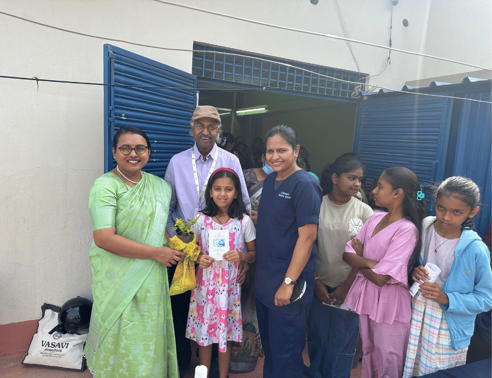 Dr. Mahalaxmi and Dr. Suneetha administered the vaccines to the children, while Dr. Prathima and Dr. Shreya carried out the screening tests for women. The initiative was strongly supported by Mitra volunteers, nursing staff, and medical teams, including Dr. Sowmya and Dr. Hema from SNH and BMCH. The second dose of the HPV vaccine is scheduled before mid-July 2026 to ensure complete immunization for all participating children.