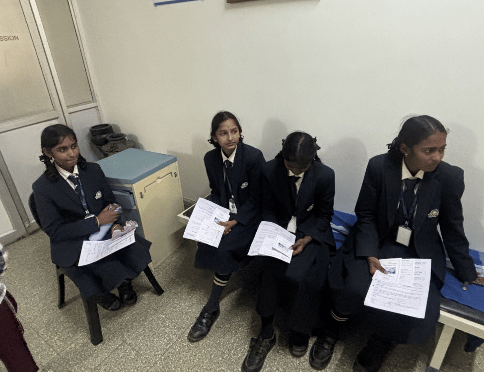 Dr. Suneetha, Dr. Mahalaxmi, Dr. Manvi and Dr. Kruthi from Mitra CanCare along with Dr. Vijayalakshmi of N R Hospital, administered the vaccine to all the children. Four Mitra volunteers assisted this drive along with the Principal Mrs. Jegatheeswari and 10 teachers from the school. Mr. Ganesan from Serum Institute supported us in supplying the vaccines in a cold chain for administration. Dr. Manjunath Reddy and Dr. Vijayalakshmi Manjunath of NR Hospital, along with their Nursing staff and other attendants provided us the support and facility to administer this vaccine. The 67 students who were administered the second dose, and 28 students took the first dose on 31 January 2026. The HPV vaccination card has been provided to each student along with basic details of the child and the due date of second dose will be July 2026.